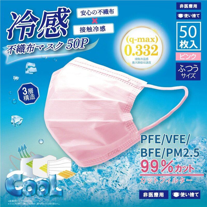 冷感マスク 使い捨て ピンク マスク 不織布 50枚 接触冷感 ひんやり 冷たい 夏用 クールcool 暑さ対策 大人用 女子 おしゃれ 女性