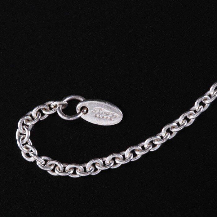 ミラーカットを施すことにより輝きを最大限に引き出したブラックキュービックジルコニアを、ロゴが刻印されたシルバーで囲ったチャームのチェーンネックレス。