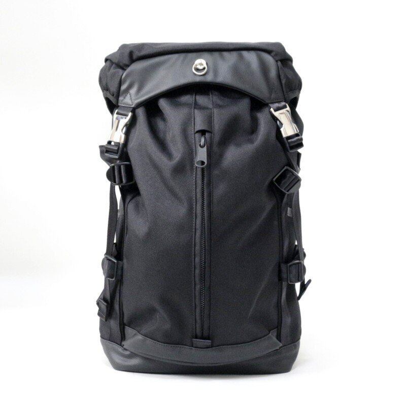 アイレットパーツをワンポイントにしたシンプルなデザインのバックバッグ。ストームフラップやハト目、アクセサリーパッチ等、アウトドアのディテールを採用、サイドにはオープンポケットが付いているので、折り畳み傘やペットボトルの収納可能です。