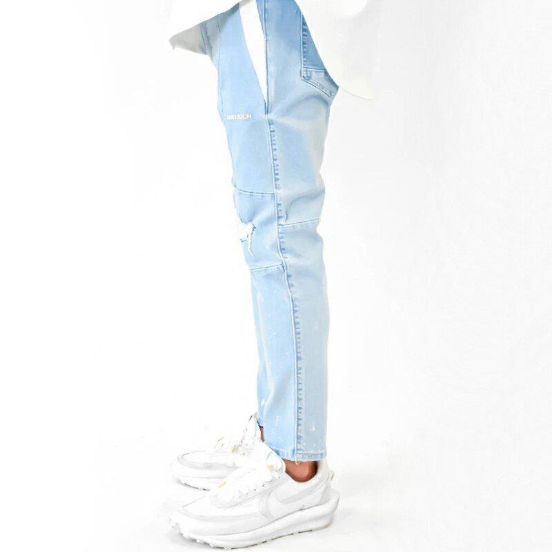 ダメージ加工によりシックな大人カジュアルからエッジのきいたストリートスタイルまで様々な着こなしにマッチするダメージデニムは、 膝下部分から装飾されたポップなペンキ加工を施しラフな開放感もまた魅力的に仕上がっています。 膝に施されたダメージ加工は、あて布が施されているため肌を露出をする心配もご無用。 ストレッチが効いて動きやすいストレッチデニムを採用している為、アクティブなお子さんとの外遊びも楽々こなせる、30代や40代の男性にぴったりのデニムです。