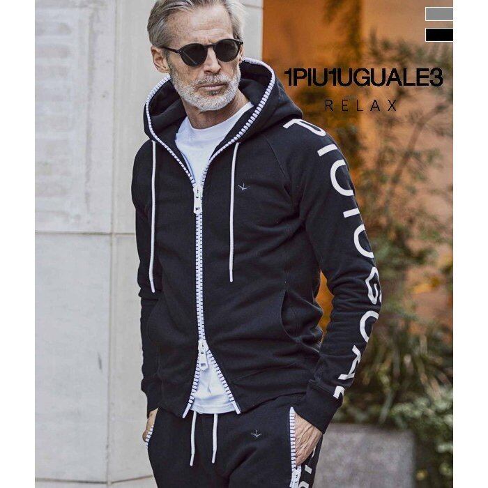 1PIU1UGUALE3 RELAX ウノピゥウノウグァーレトレ ビッグファスナーサイドロゴパーカー カジュアル スポーツ フーディー おしゃれ ブランド