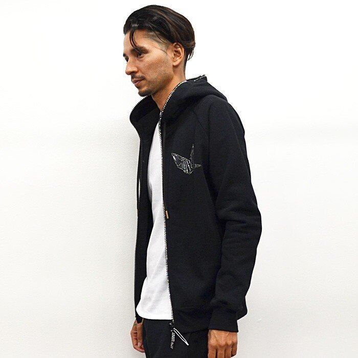 同ブランドのアイコン「鶴」に加えて、フード周りまでラインストーンが配されたラグジュアリーな逸品です。