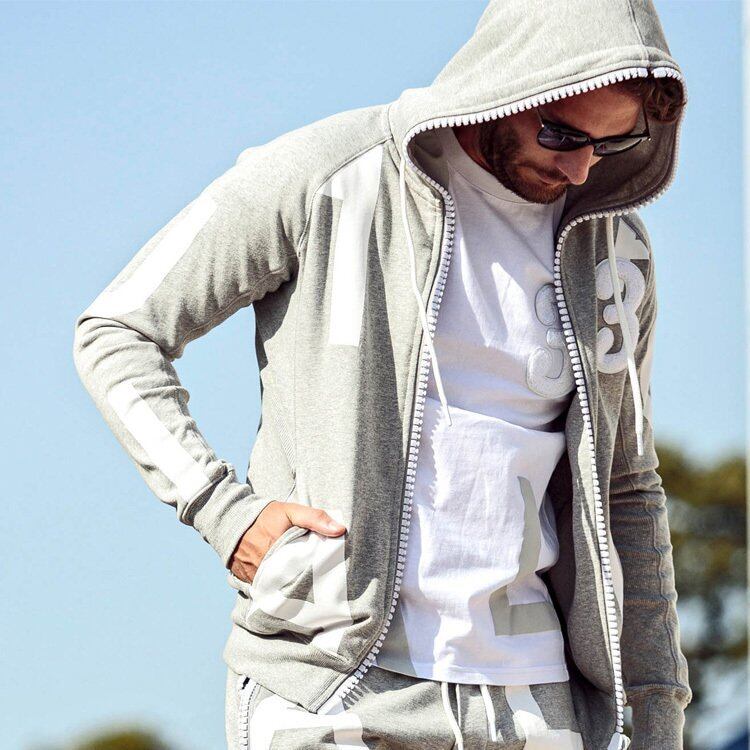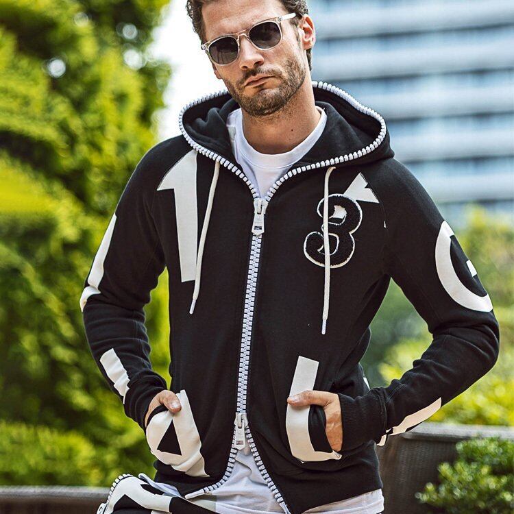 全体にブランドロゴをランダムに散らしたオリジナルの総柄がアクティブな印象を形成。