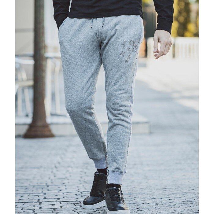 1PIU1UGUALE3 RELAX ウノピゥウノウグァーレトレ ラインストーンロゴスウェットパンツ カジュアル スポーツ ルームウェア スリム ブランド おしゃれ