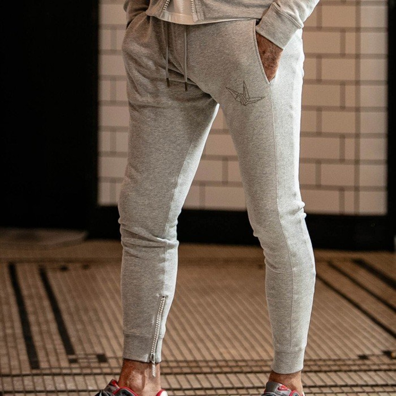 ウノピゥウノウグァーレトレ(1PIU1UGUALE3) ラインストーンロングパンツ ジャージ スウェットパンツ セットアップ ブラック グレー XL XXL