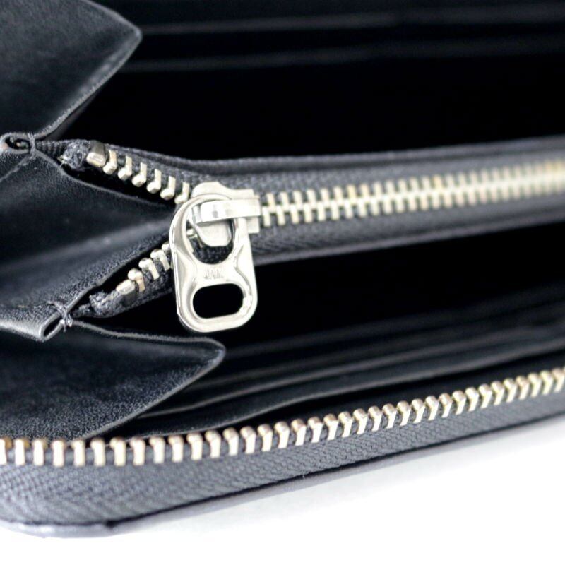 プルタブを模した引き手によりファスナーの開閉も容易です。アイレットパーツは360度回転し、ウォレットチェーンの絡まりを防ぎます。