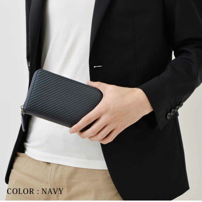 艶感のある美しいカーボンレザーロングウォレット