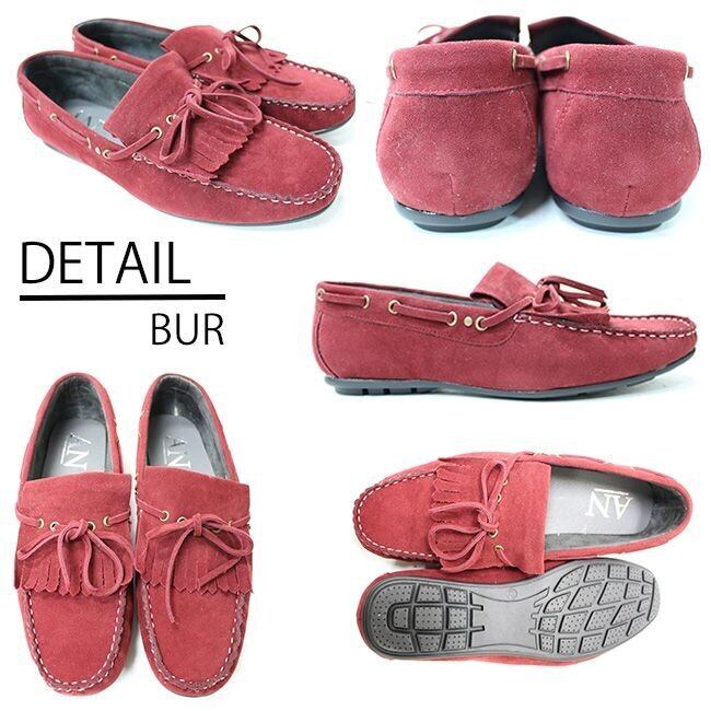 ホワイトステッチが目を引くモカシン縫いを施した丸みのあるトゥにナチュラルな質感に暖かみを感じるフェイクスウェードを素材に使用、クセが無いデザインが幅広いコーディネイトに対応してくれます。