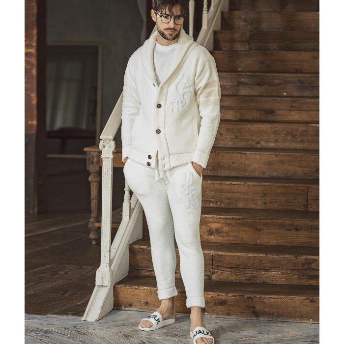 1PIU1UGUALE3 RELAX ウノピゥウノウグァーレトレ ロゴアップリケニットショールカーディガン&パンツセット セットアップ ルームウェア