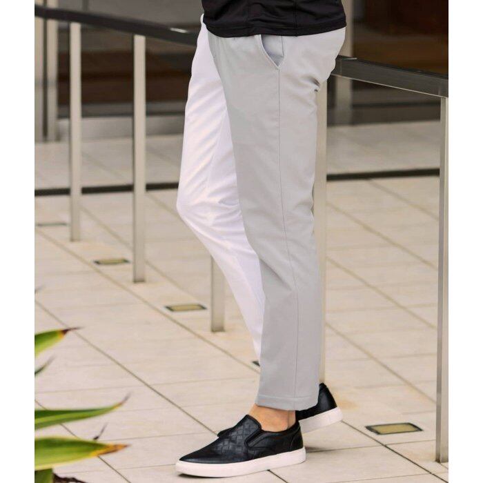 大胆に色を切り替えたバイカラーデザインがスタイリッシュなスラックス。防風機能を備えた生地は裏面を起毛にすることで保温性も両立しています。インスタイルもサマになるベルトループとフライに加え、内側にはドローコードも配置。ストレッチ性も相俟って、プレー中や移動時の動きを妨げないストレスフリーな一本に仕上がりました。シンプルでスタイリッシュなデザインはゴルフだけでなくタウンユースにも活躍が期待できます。
