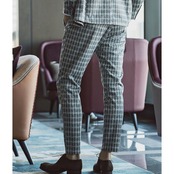 クラシカルなスラックスパンツ。かっちりしたフォーマルなデザインに見せつつウエストはドローコードで調節可能。また、リラックスラインならではのストレッチの利いたジャガード素材で着心地は抜群。ふくらはぎは少しだけ膨らませつつシルエットを細く見せるオリジナルパターンワーク。