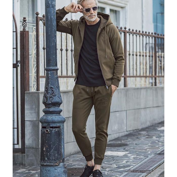 両面起毛のスウェードシリーズ。フロントに大きな3ロゴアップリケが配されたキャッチーで大胆なデザイン。カーキ&ブラックのクールなカラーリングの中にも遊び心を忘れない、1PIU1UGUALE3 RELAXらしいロングパンツです。