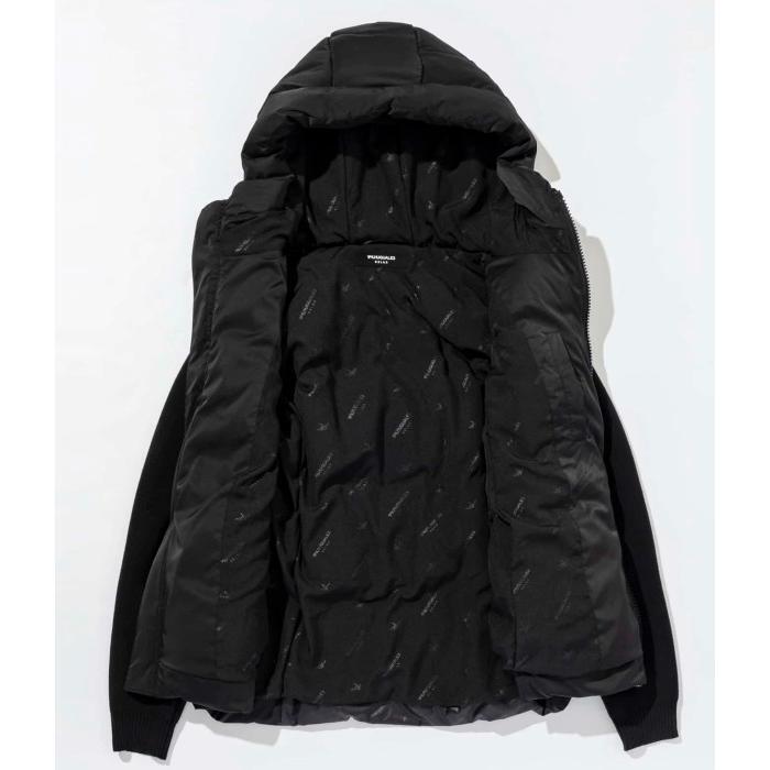 脇にオリジナルロゴを配し、袖にラバーロゴをあしらいました。胸元にはブランドの象徴の「折鶴」も!フード部分にも上質なダウンをふんだんに使用し、冷気をシャットアウト!寒い季節の頼れる相棒です。
