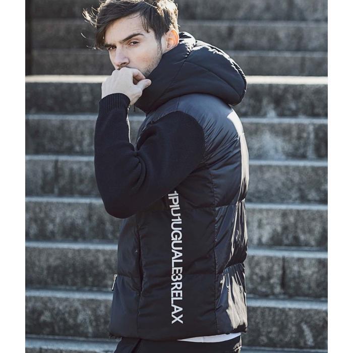 サイドロゴニットコンビリラックスダウンジャケット メンズ アウター 1PIU1UGUALE3 RELAX 切替 秋冬 防寒 おしゃれ ブランド ウノピゥウノウグァーレトレ