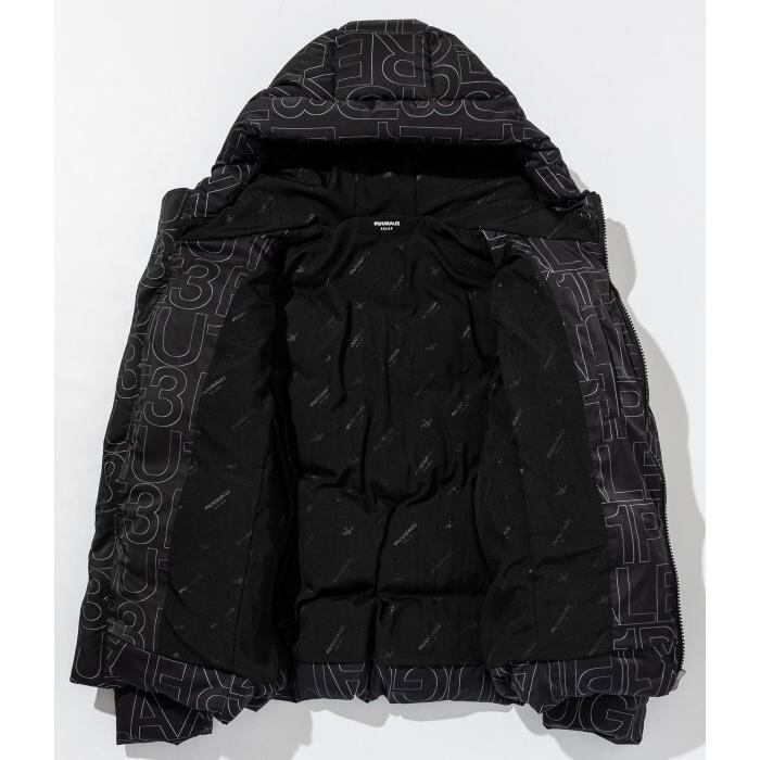 ボディにはオリジナルで作成した中抜きロゴを総柄で使用。スタイリングに華やかさをプラスしてくれます。サイドのポケットにはコンシールファスナーを配置し、アクティブなシーンでも小物の落下防止など安心な仕様に。さらに左身頃には内ポケットも装備しました。