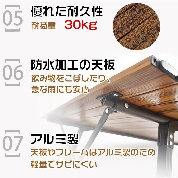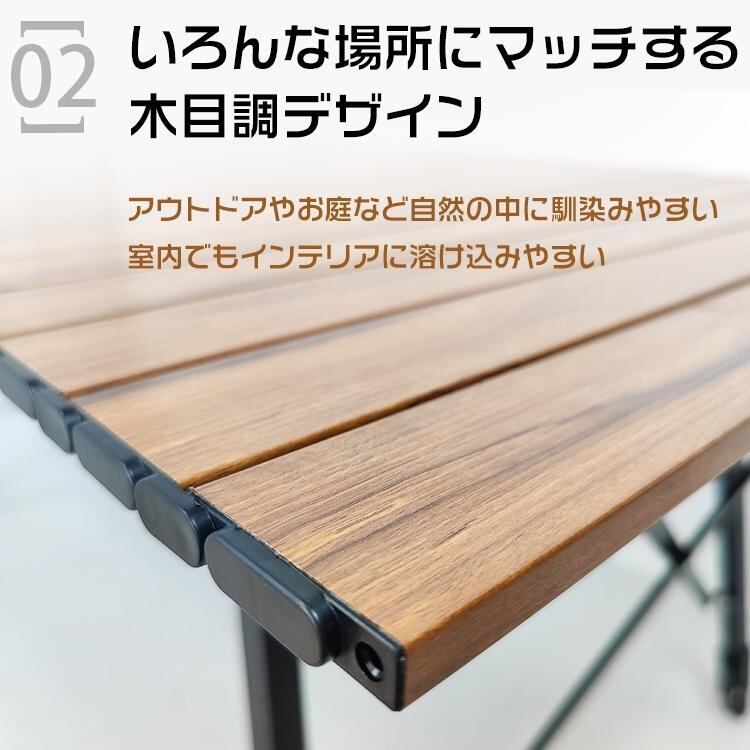 アウトドア 折りたたみ テーブル 机 高さ調整 ロール式 天板 ロング 木目 アルミ コンパクト 収納袋付き レジャー キャンプ ピクニック BBQ od457