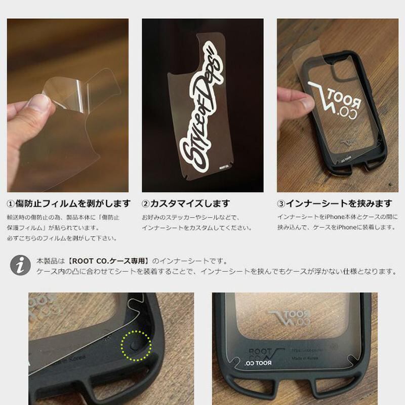 ROOT CO.の背面クリアiPhoneケース「Elk.」「+Hold.」「Tough&Basic」に対応した、自由にカスタマイズ可能な背面インナーシート。ステッカーやシールなどでお好みにカスタムすることで、端末(iPhone)やケースに直接ステッカーを貼らずにオリジナルのiPhoneへと着せ替える事が可能です。