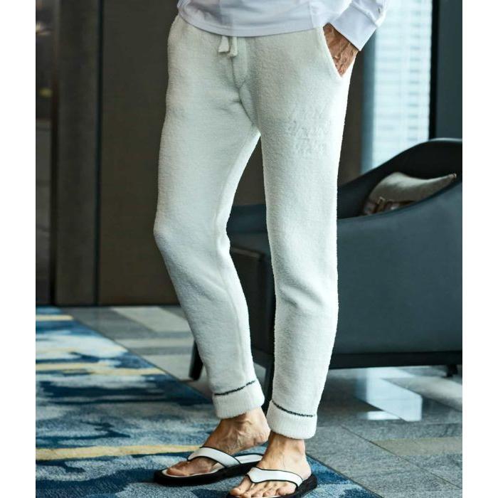 左腿には筆記体調のブランドロゴを刺繍で配置。柔らかなニットの質感と相俟って、高級感漂うラグジュアリーな品格を醸します。