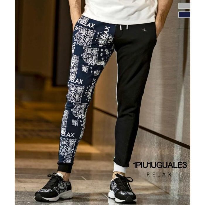 1PIU1UGUALE3 RELAX ウノピゥウノウグァーレトレ リラックス ブロッキングペイズリーロングパンツ スウェット カジュアル スポーツ スリム ブランド