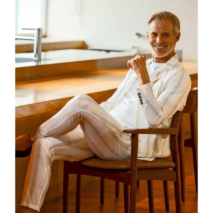ブランドオリジナルのシルエットはゴージラインを高めに設定したイタリアンなハイゴージ仕様。上品なトラックストライプと相俟ってシャープな印象をプラスし、大人の休日スタイルを格上げ。