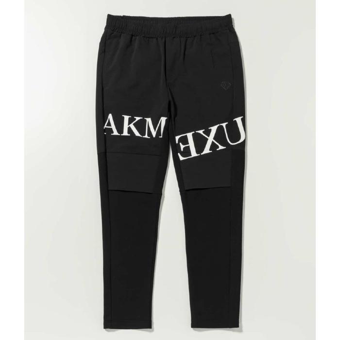 ブランドロゴを大胆に配置した異素材コンビパンツ。