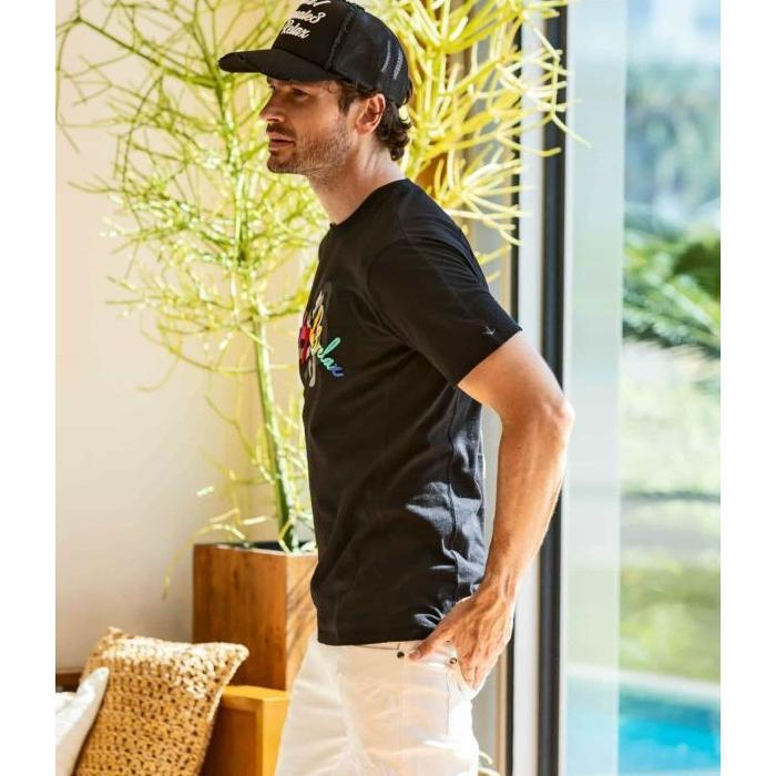 人気のレインボーロゴを立体的な起毛刺繍で施したポップな半袖Tシャツ。ブランド名の意味を表した「1+1=3」を配色使いのプリントで重ねキャッチーな表情に仕上がりました。
