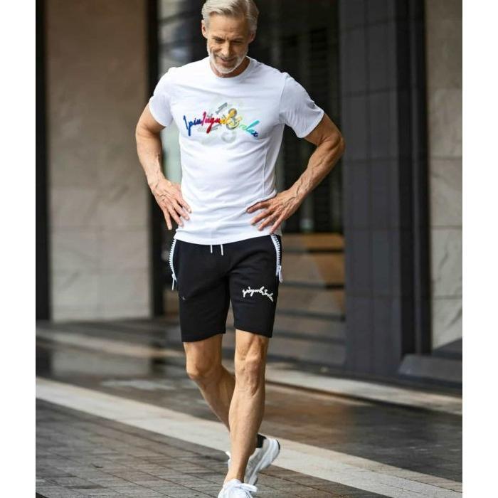 1PIU1UGUALE3 RELAX ウノピゥウノウグァーレトレ リラックス 3Dレインボーロゴ半袖Tシャツ カットソー カジュアル スポーツ インナー