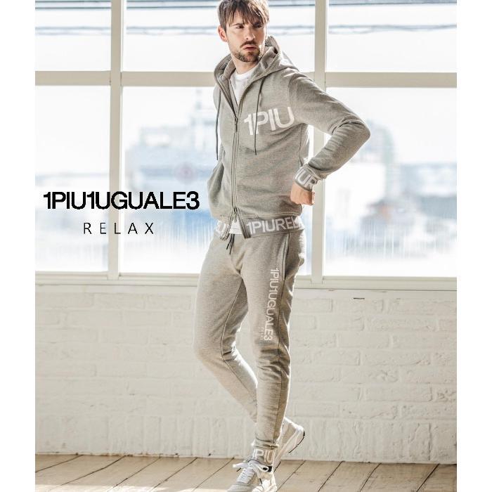1PIU1UGUALE3 RELAX ウノピゥウノウグァーレトレ リラックス ラインストーンジップロゴスウェットパーカー&パンツセット セットアップ