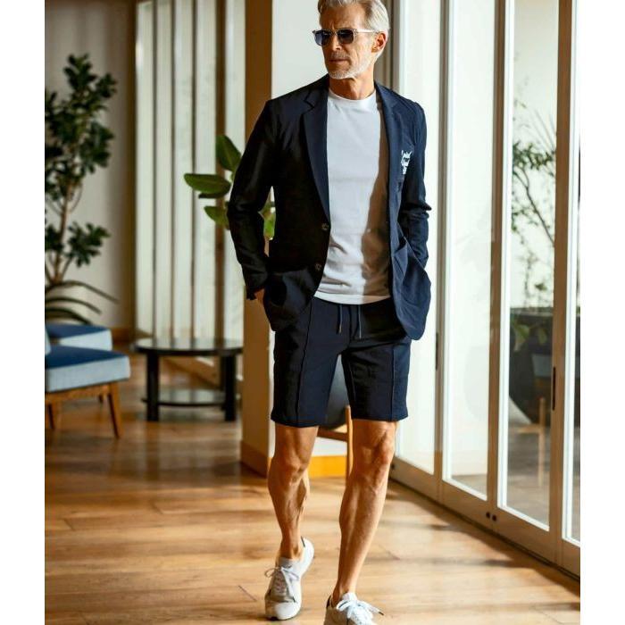 1PIU1UGUALE3 RELAX ウノピゥウノウグァーレトレ リラックス ロゴ刺繍シアサッカーショーツ ハーフパンツ きれいめ カジュアル