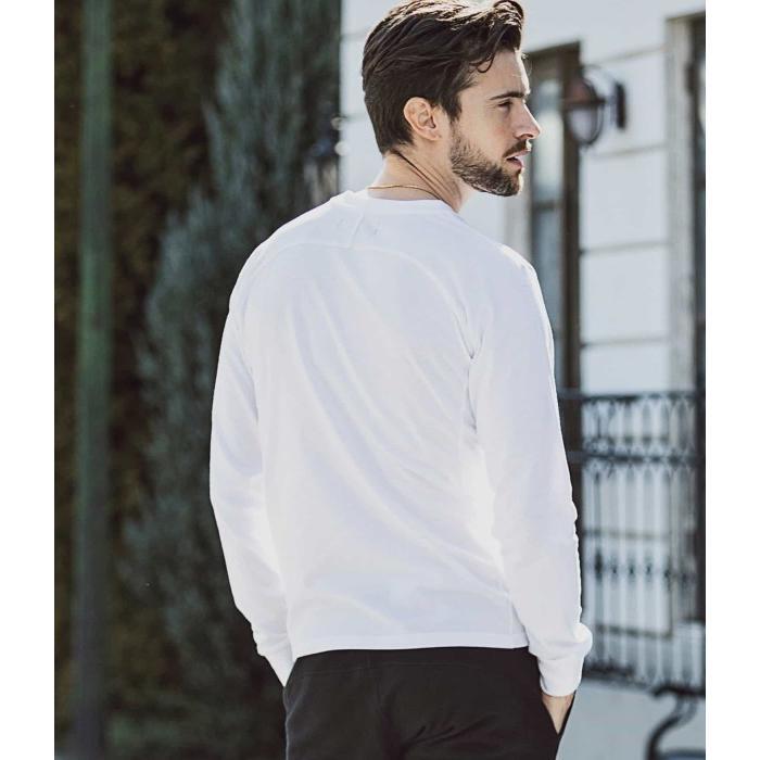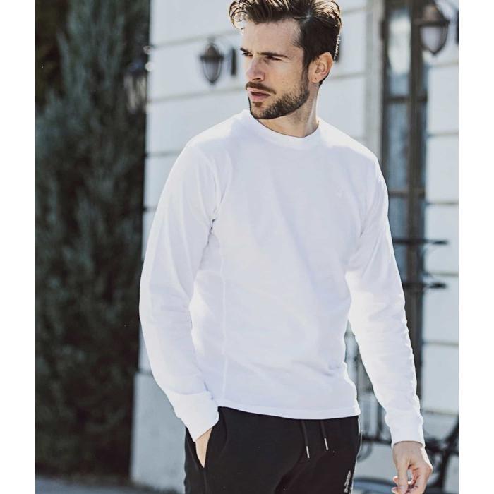 胸元にはブランドの象徴である折り鶴のワンポイントロゴをプリント。着回しが効く一品です。吸湿や保湿などに優れ、タフに使える綿100%の素材で1年を通して快適さを保証。