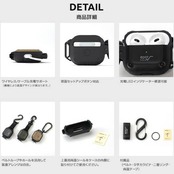 米国MIL規格準拠の耐衝撃性&PCとTPUの2層構造で衝撃吸収力を兼ね備えたAirPodsケース。20mm幅のウェビングテープ等を取り付け可能なループと二重リングを取り付け可能なホールをサイドに搭載し、安心のロック機構を採用しました。