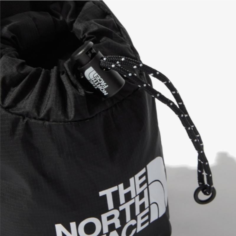 最大の特徴はフロントに設置された巾着式のポケット。使用頻度の高い荷物やペットボトル、水筒をドローコードできゅっと絞って収納が可能なため、キャンプやフェスのアウトドアシーンでも大活躍。