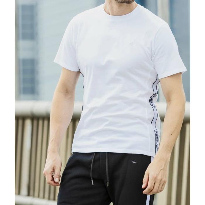 サイドにオリジナルのロゴテープを配置したスポーティなアイテム。フロントはベーシックなセットインスリーブ、バックはラグランスリーブで組み合わせたスプリットラグランスリーブにより、スマートなシルエットと可動性の高さを両立。