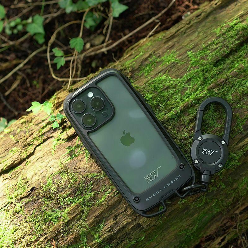 ROOT CO ルートコー iPhone14Pro専用ケース+マグネット内蔵型リールカラビナ セット スマホケース iPhoneケース キャンプ 登山 アウトドア