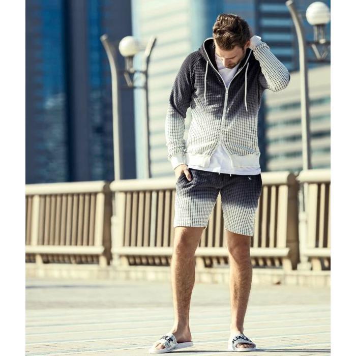 1PIU1UGUALE3 RELAX ウノピゥウノウグァーレトレ リラックス グラデーションワッフルハーフパンツ ショートパンツ 短パン