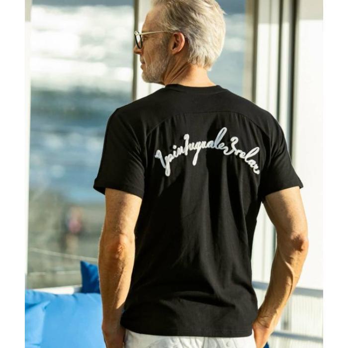 人気のコード刺繍をバックに配置した半袖Tシャツ。立体的なロゴにより印象深くリッチなアイテムに仕上がりました。