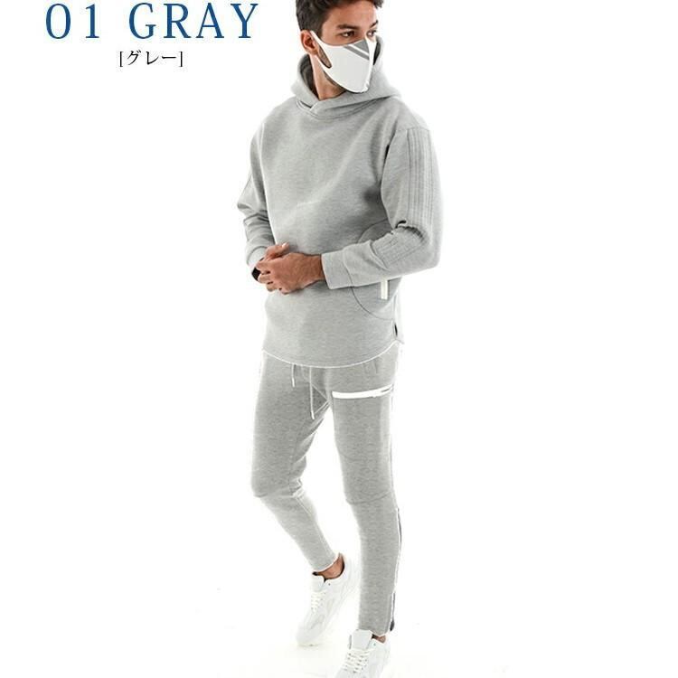 ボンディング素材のパーカーセットアップ。最も旬なスポーティ、ストリートといったアクティブな印象をプラスでき、程よくユルいシルエットが体型をカバーできるので、30代、40代の大人にも人気。いちいちコーディネートに困らない嬉しいセットアップでの展開ですが、パーカー、スウェットパンツ共にちゃんと別々で使える優れもの。トレンドのYラインのシルエット、後ろ姿まで映えるロゴプリント、止水ファスナーが簡単にフレッシュなスタイルを完成してくれます。