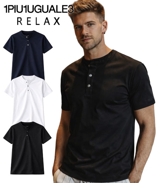 1PIU1UGUALE3 RELAX ウノピゥウノウグァーレトレ リラックス シルケットヘンリーネック半袖Tシャツ カットソー カジュアル スポーツ シンプル
