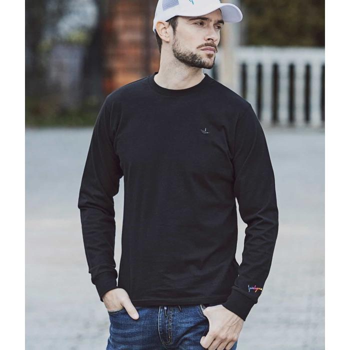 ベーシックな長袖クルーネックTシャツの袖にレインボーカラーのブランドロゴを配した、レインボーシリーズの新作です。レインボーカラーのロゴは小さいながらもきらりと存在感を主張、全体的にはシンプルなのに、しっかりと遊び心ある印象に仕上がりました。