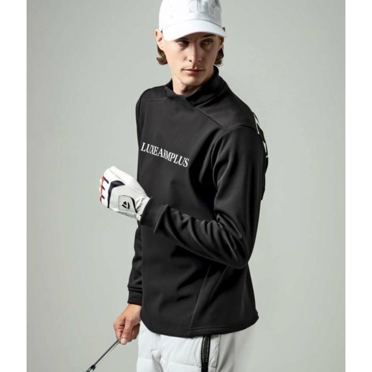 背面のビックロゴがスイング時のバックスタイルを彩るモックネックTシャツ。