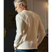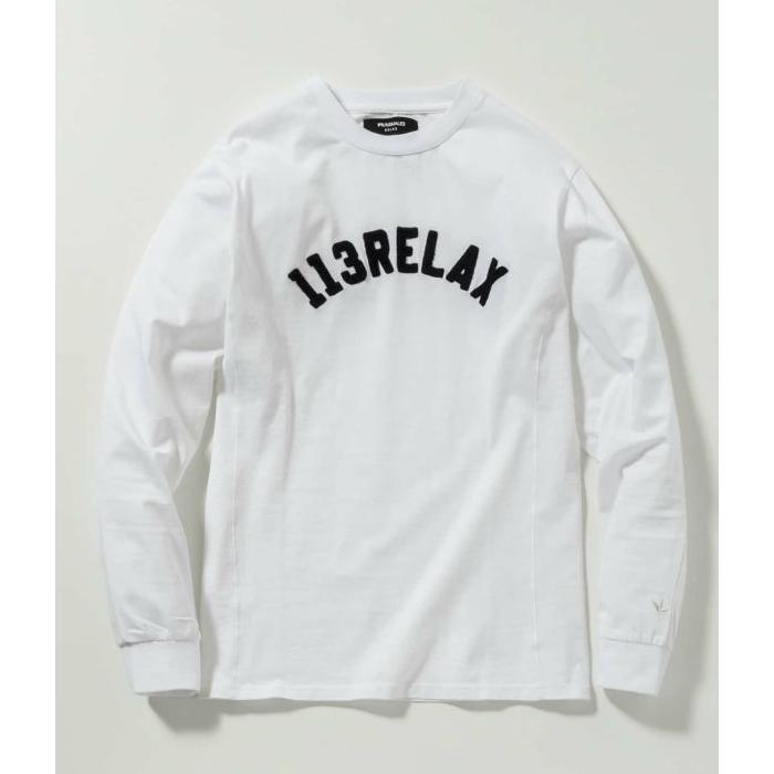 フロントにアーチ状にロゴを配置したカレッジテイストなロングTシャツ。もこもことした立体的なサガラ刺繍により、遊び心ある仕上がりに。