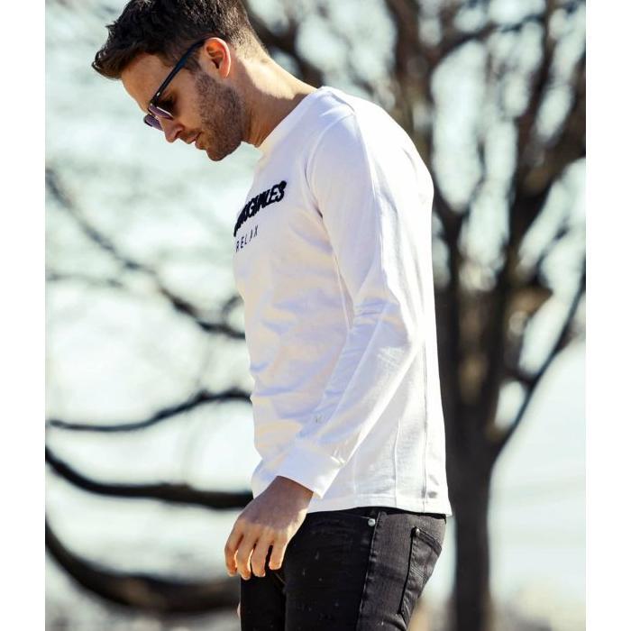 フロントにブランドロゴをあしらったベーシックな表情のロングTシャツ。ロゴ部分は柔らかいボア素材を使用し、ウォーミーなシーズンムードを演出。