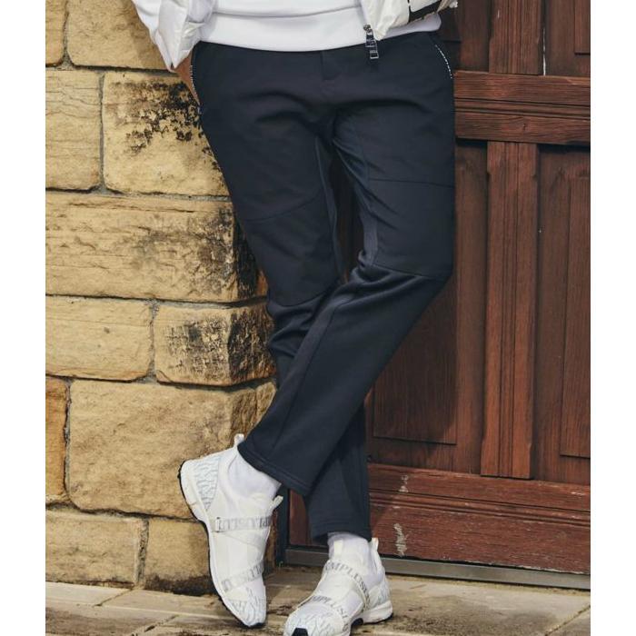 サイドロゴデザインがスタイリッシュかつスポーティな表情を形成するスラックスパンツ。