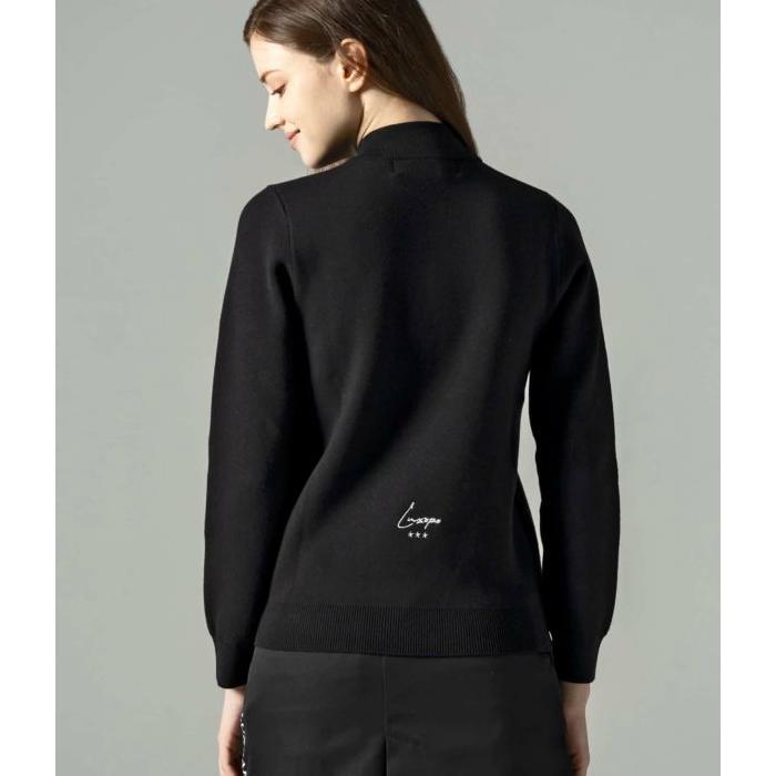 フロントにブランドロゴを配したベーシックなモックネックニット。