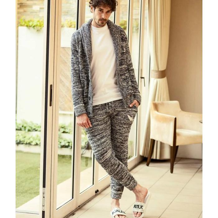 先行予約 1PIU1UGUALE3 RELAX ウノピゥウノウグァーレトレ リラックス 折り鶴刺繍ニットパンツ メンズ カジュアル ルームウェア 部屋着 もこもこ