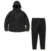 オリジナルの総柄ロゴが目を惹くセットアップ。