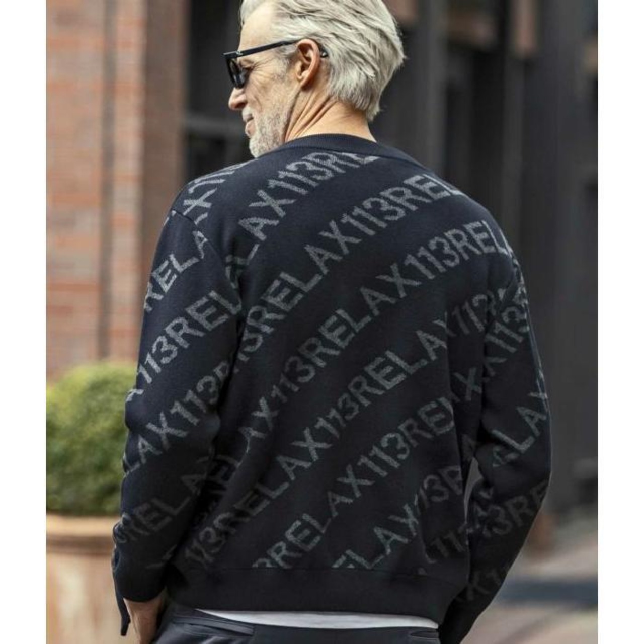 ブランドロゴを総柄で使用したミドルカーデ。ロゴのトーンを合わせることで派手過ぎずスタイリングに馴染む仕上がりに。