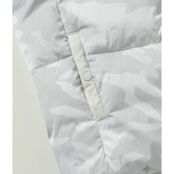 ホワイトはカモ柄、ブラックはペイズリー柄とカラーでグラフィックの異なる中綿セットアップ。