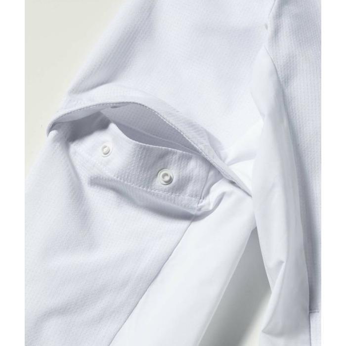 袖部分は釦での着脱が可能な長袖/半袖2way仕様。シーズンを問わず通年活躍が期待できます。