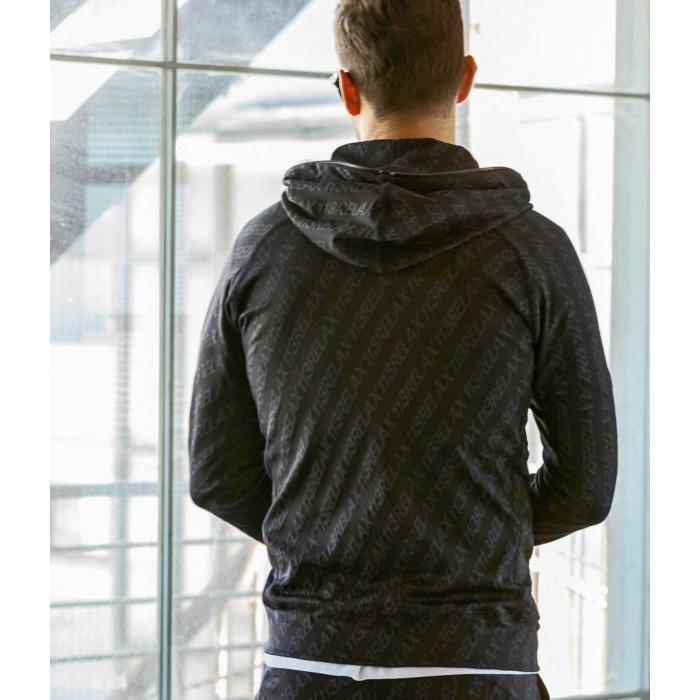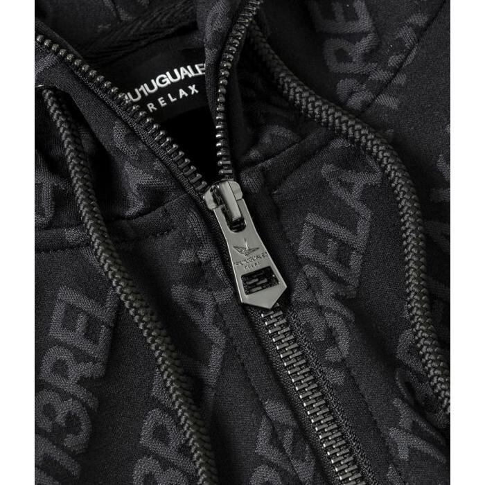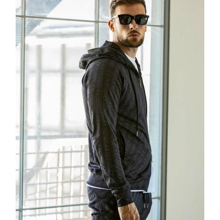 ブランドロゴを印象的に配置した総柄のジップアップパーカー。ジャガード織で表現したロゴは同色使いにすることで高級感のある表情に仕上がりました。